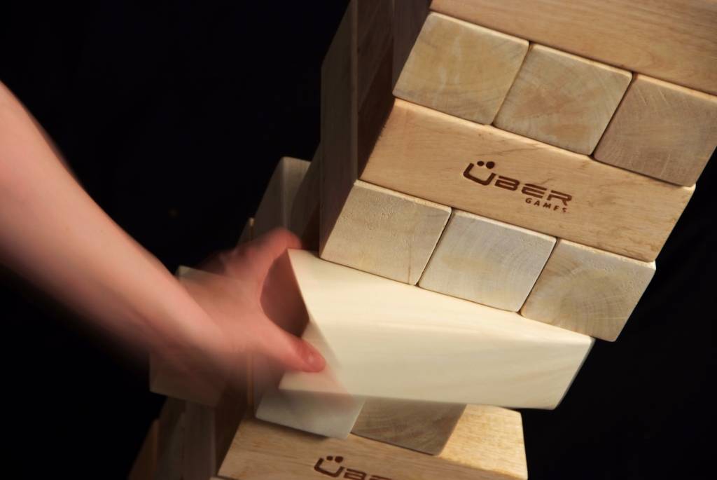 Das beliebte Geschicklichkeitsspiel mit den kleinen Hölzchen erhalten Sie bei Koob Events im XXL-Format. Das Riesen Jenga garantiert einen Riesenspaß auf Ihrem Event! Bereits zu Beginn eines Spiels ist der Turm aus riesigen Holz-Bausteinen 120 Zentimeter hoch. Je nachdem, wie geschickt sich die Spieler anstellen, kann der XXL-Turm mehr als die doppelte Höhe erreichen – da müssen die Teilnehmer dann auch schon mal zur Treppenleiter greifen. Wenn der Turm fällt, steht der Verlierer fest.